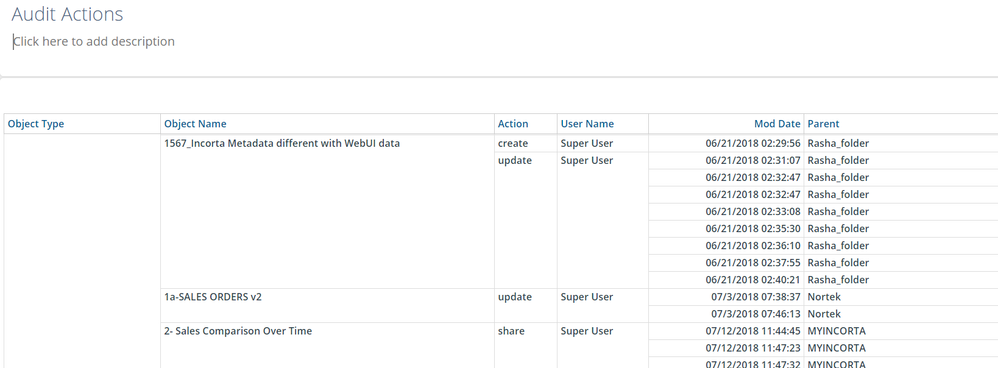 This page describes how to create an Audit report based on incorta objects, Actions(Create, Update and Delete), And Users Who modify/create these objects.