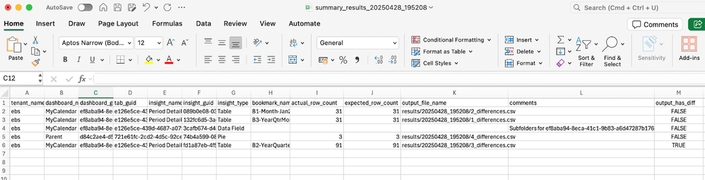 The summary result provides a quick view of whether the insights have been processed by the script or not. It also indicates if the output has differences.
