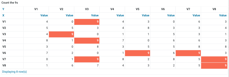 Adding one visual element (color coding the 9s) has made a tedious task a lot easier, and will improve your efficiency as the amount of data in the table grows.