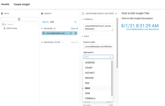 At times it may be helpful for the consumers of reports and dashboards to know when the data was refreshed. This article will walk you through the process of adding that information to an insight within Incorta.