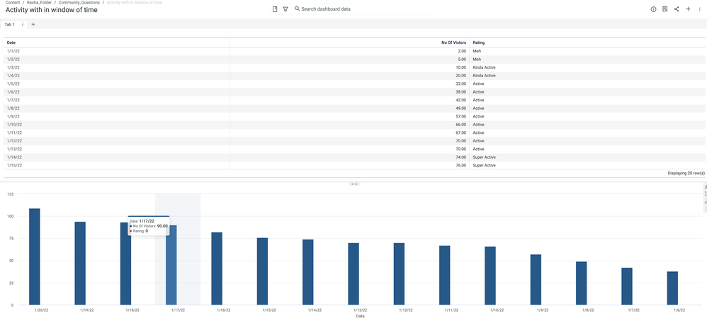 If I have a site and I want to bucket visitors in to 'Super Active,' 'Active,' 'Kinda Active,' and 'Meh' based on a rolling n-day window of activity ( e.g. 30 visits is 'Super' 2 is 'Meh' )