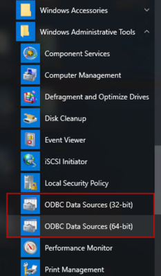 - Open the ODBC Data Source Administrator dialog box, go to the Start menu under Windows Administrative Tools, and choose ODBC Data Sources: