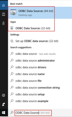 Or simpler, in the Windows search box, type the ODBC Data Sources word:
