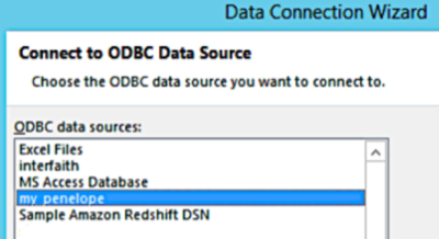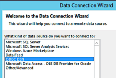 2- Select ODBC DSN from the Data Connection Wizard and click Next.