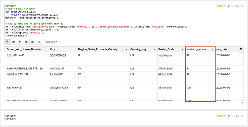 df = df.withColumn("similarity_score", MatchUDF(col("Address1"),col("Street_and_House_Number"))).withColumn("run_date", current_date())