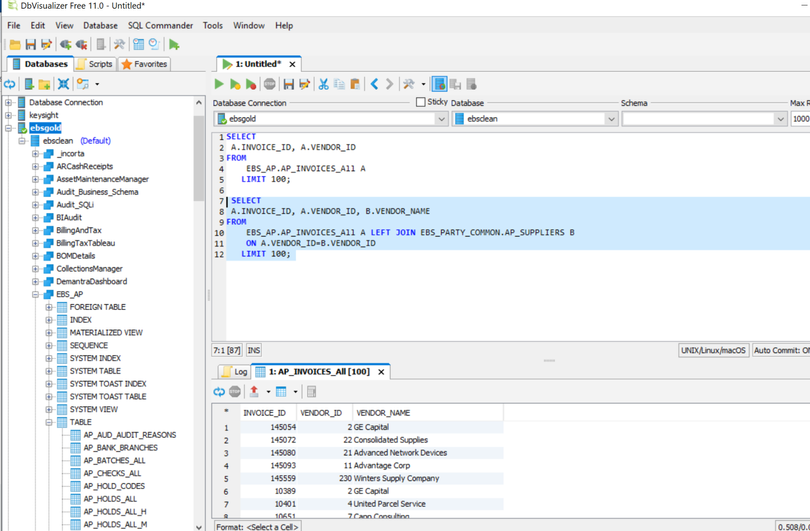 Now connect to Incorta and test a SQL query, please note that schema and table names are case sensitive