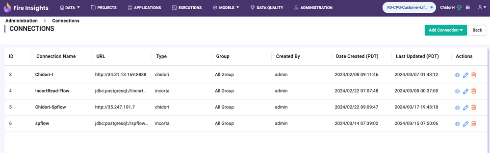 Sparkflows supports two types of connections: