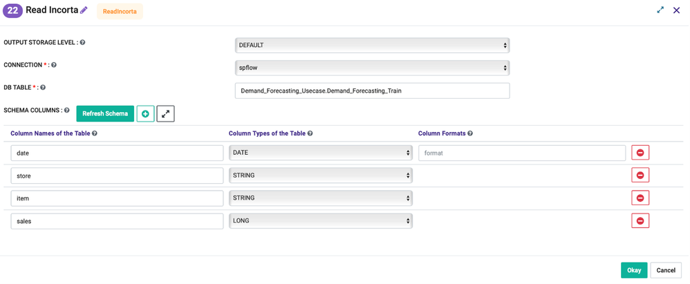 After you refresh schema from Incorta, the columns and types of columns will be refreshed in Sparkflows and available for the rest of the workflows.