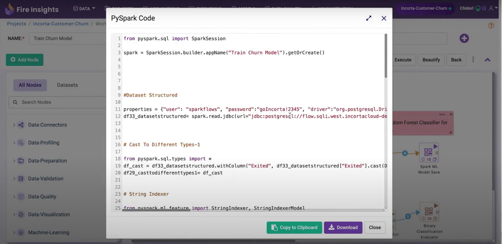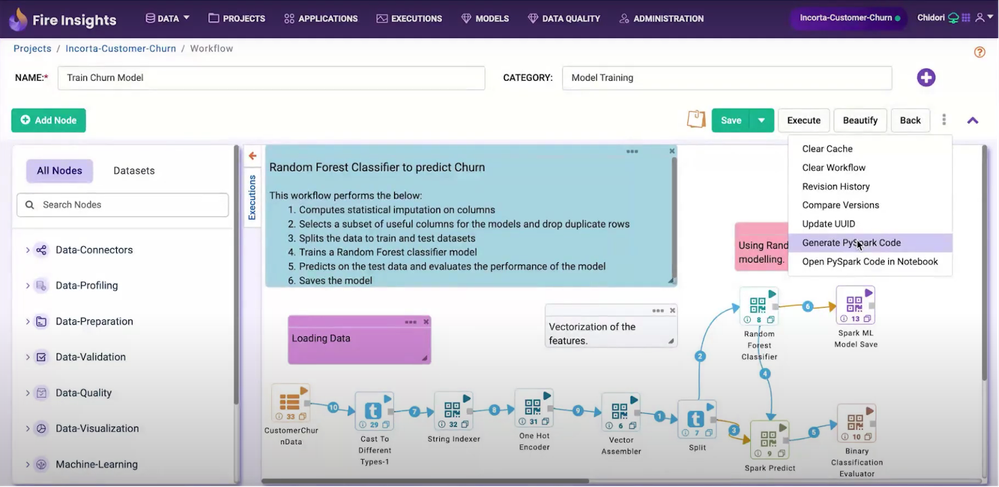 PySpark Code can be generated for workflow and executed on any Spark environment by following the below steps: