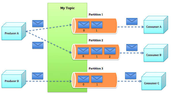 For each topic, the Kafka cluster maintains a partitioned log that looks like this:
