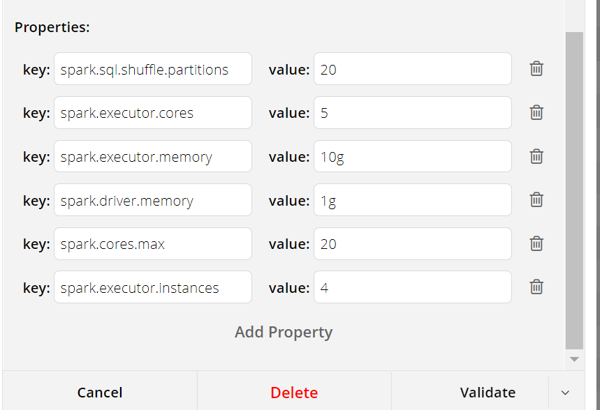 Available Spark configurations for MV are listed below. Note that these are based on the machine specs and impact the performance significantly. The configuration tab of a sample MV can looks like this. Start by setting the five key properties mentioned below and go from there: