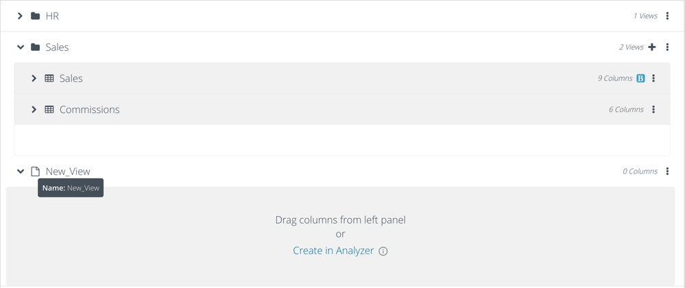 This is our standard and most heavily used view for organizing attributes and hiding the complexity of the physical schemas for dashboard creation. Best practices for this type of view have been covered in another article. Regular views are also well suited to issue queries against external tools like Tableau and PowerBI.