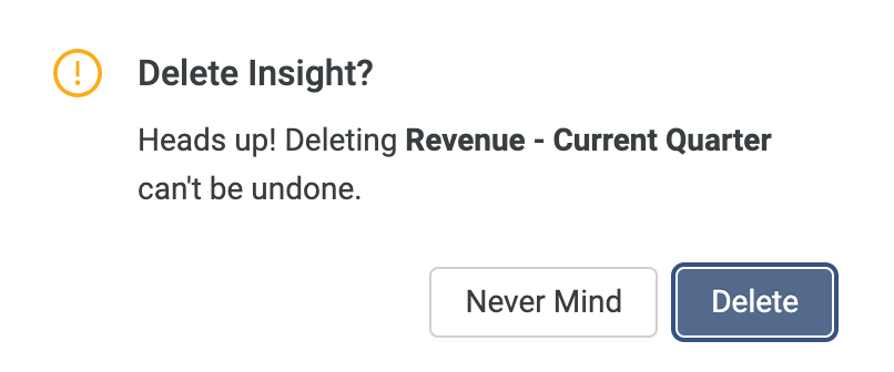 Since Delete and Duplicate options are next to each other, an accident mouse drop will lead to deleting the insight since there is no confirmation option now.