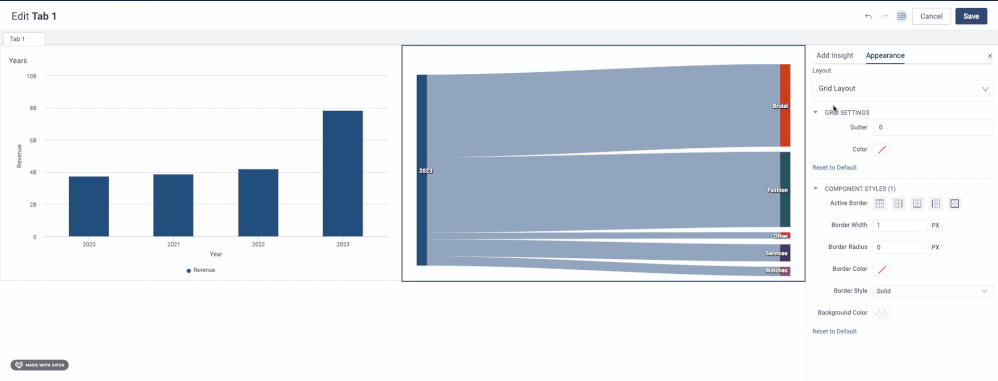 I have come across some interesting reports that show this kind of combination. The Sankey is after the final column and shows the breakdown of the makeup of that final column (like a stacked column only just for the last column and not a column.) I have attached an example from a report I get daily.