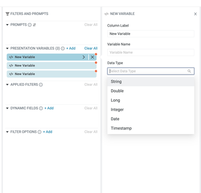 Right now , you have the ability to add multiple presentation variables with different data types.